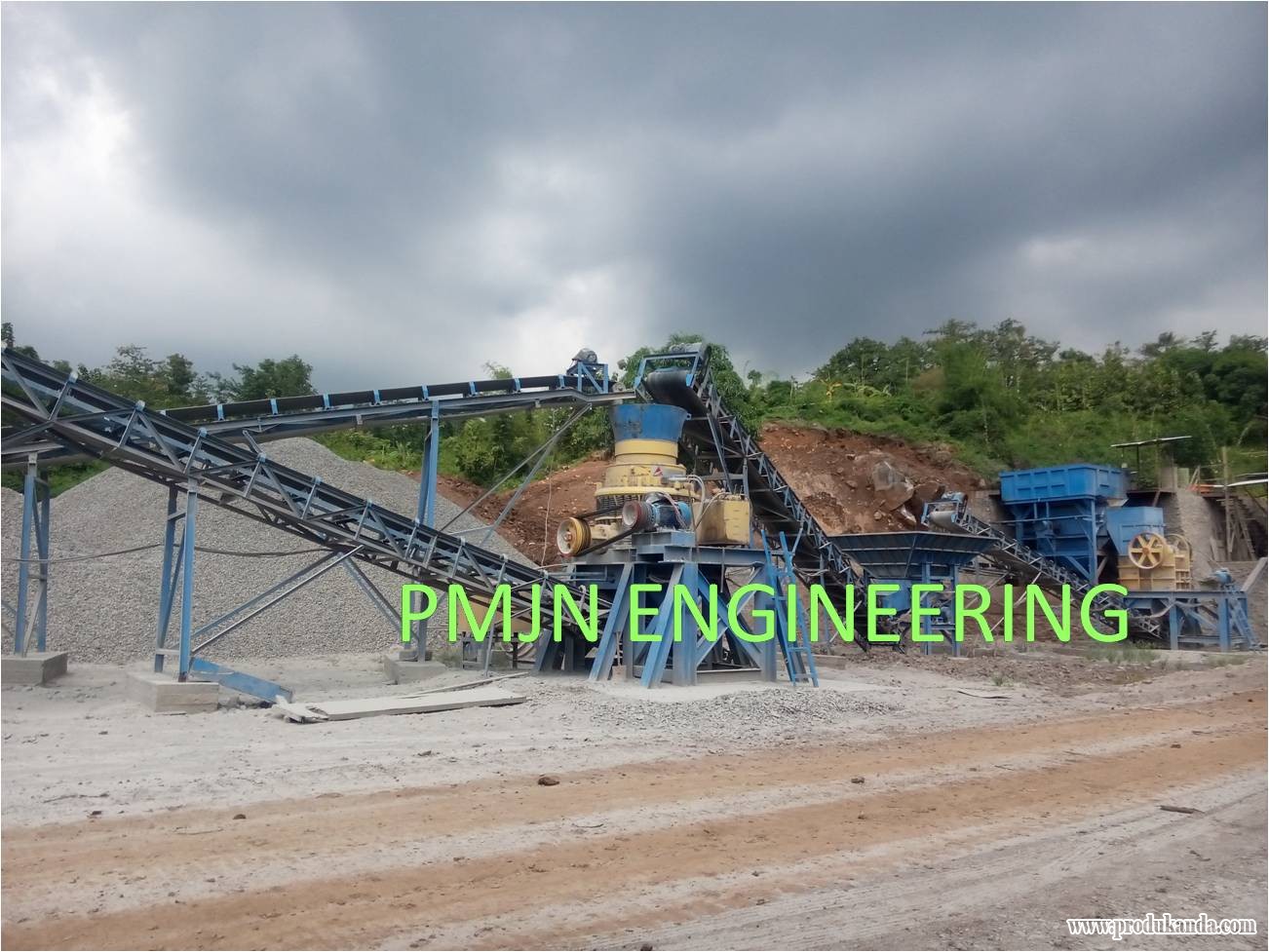 Stone crusher merupakan alat produksi material pembangunan infrastruktur, yg fungsinya memecah batu kali maupun batu gunung dari ukuran 10 - 50 cm menghasilkan 4 fraksi produk aggregate / batu split yakni ukuran 3-5, 2-3, 1-2, 1-1 dan abu batu